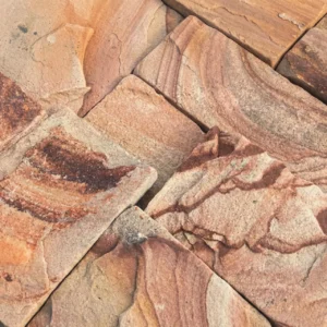 Лемезит галтованный темно-красного (бордового) цвета представляет собой элитный вид природного плитняка, прошедший специальную механическую обработку для скругления острых краев. В процессе галтовки камень приобретает гладкую, «состаренную» фактуру и благородный матовый блеск, что делает его визуально мягче и приятнее на ощупь. Насыщенный винный оттенок с уникальным рисунком колец на срезе не выгорает на солнце и сохраняет свою эстетику десятилетиями, становясь еще ярче при намокании или обработке лаком.